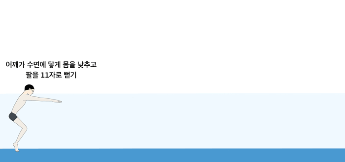 1. 어깨가 수면에 닿도록 자세를 잡고 팔을 앞으로 나란히 펴줍니다.
