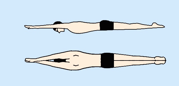 스트림 라인의 자세는 머리 위로 손을 모으고 팔을 곧게 펴고 귀 뒤쪽에 빈틈없이 밀착시켜 몸을 날렵하게 만드는 자세입니다. 수영 시합을 하는 선수들을 보면 스타트 후 물속에서 머리 위로 손을 모으고 빠르게 웨이브를 하며 속력을 내는 모습을 보셨을 것입니다. 이것을 잠영이라고 하는데 잠영을 할 때는 꼭 스트림 라인을 만들어야 합니다.