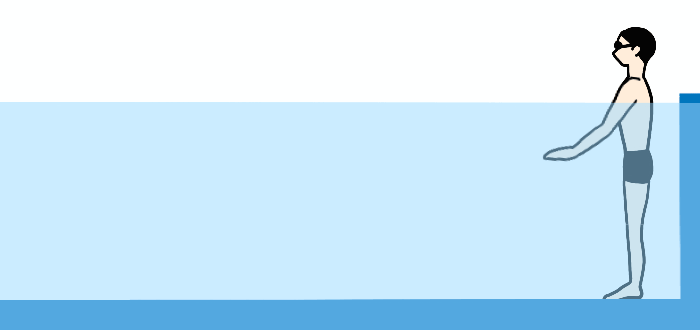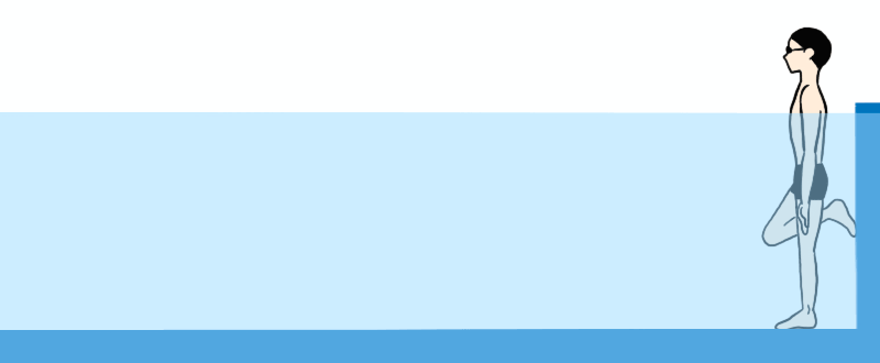 주의) 출발하기 전 벽에 몸이 바짝 붙어 있으면 엉덩이가 벽에 부딛히며 제대로 잠수 할 수 없기 때문에 몸이 벽에 부딛히지 않도록 몸과 벽사이에 여유공간을 만들어 주어야 합니다.