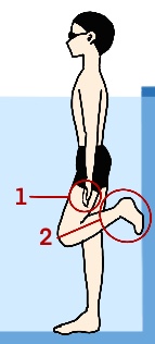 주의) 벽을 발로 차고 나가는 것은 잠수 동작이 완성된 가장 마지막 단계입니다. 또 발바닥 전체가 아니라 발끝으로 벽을 차고 나갑니다. 그래야지 미끄러지지 않고 힘있게 벽을 박차고 나아갈 수 있습니다.
