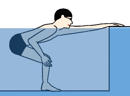 - 풀 사이드에 두 손을 나란히 올려 줍니다. 손은 어깨 넓이만큼 벌려 줍니다. 어깨가 수면에 닿아 손과 어깨가 일직선이 되도록 몸의 높이를 조절해줍니다. 엉덩이를 뒤로 보내 머리는 물에 들어가지 않지만 상체를 최대한 엎드린 자세로 만들어 줍니다. 다리는 런지 자세나 양쪽 무릎을 꿇고 앉은 자세로 몸이 흔들리지 않도록 해줍니다. 시선은 정면이 아니라 풀 사이드를 잡은 손을 바라봅니다.