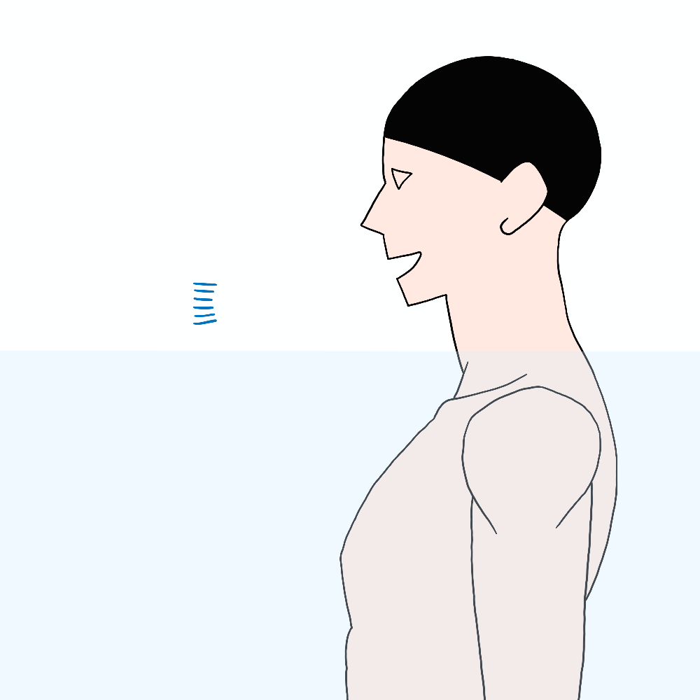 1. 물 밖에서 입으로 숨을 충분히 들이쉽니다.
